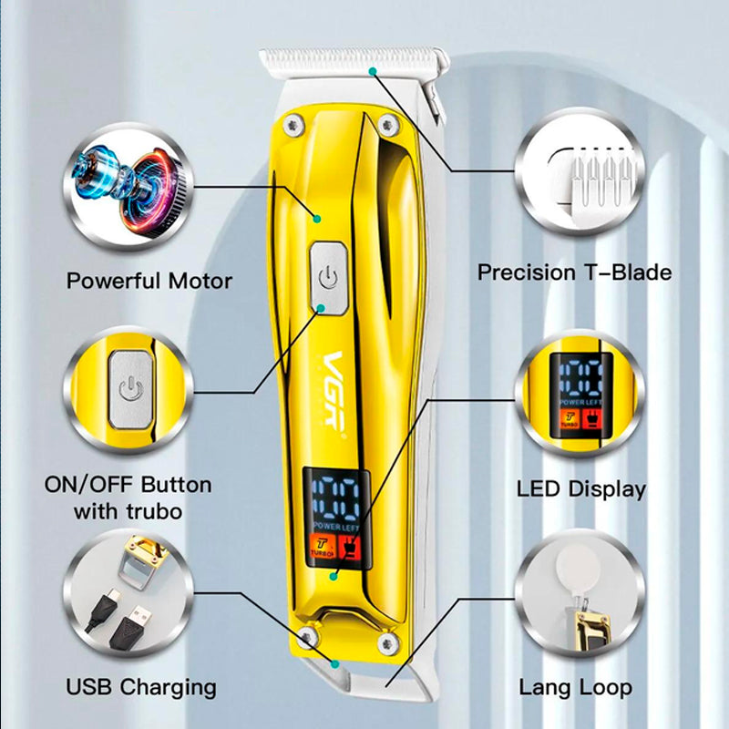 Der VGR V-956 vereint präzise Schneidleistung mit modernem Komfort. Ob Bart, Haare oder Konturen – dieser Trimmer liefert professionelle Ergebnisse. Dank des kabellosen Designs und der langen Akkulaufzeit ist er der perfekte Begleiter für zu Hause und auf Reisen.