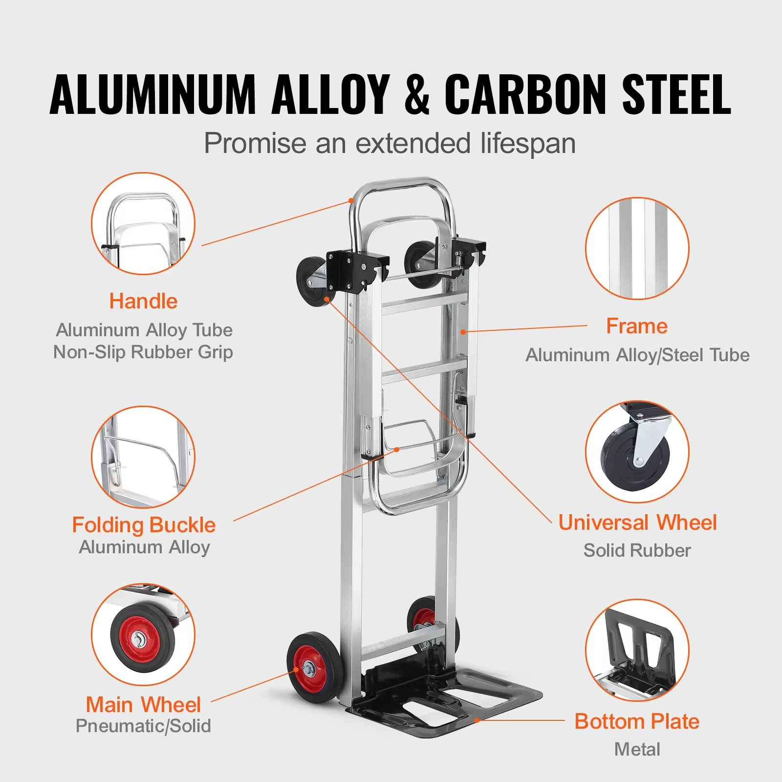 - 1× Klappbarer 2-in-1 Handwagen (Aluminium/Kohlenstoffstahl)