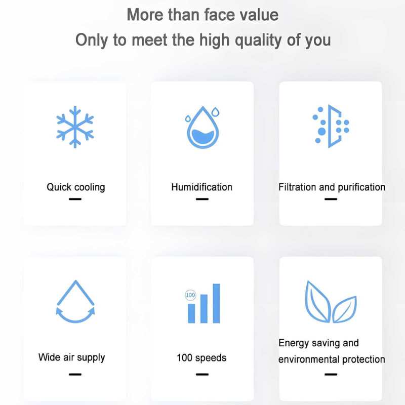 Doté d’un réservoir d’eau grande capacité et de multiples vitesses, ce mini climatiseur offre un refroidissement sur mesure, tout en améliorant la qualité de l’air ambiant. Il fonctionne sans gaz réfrigérant, ce qui le rend sûr et respectueux de l’environnement.